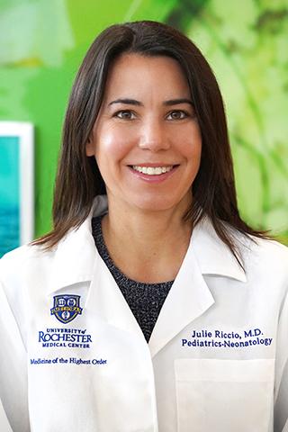 She is now piloting a study with a subset of NRN sites, headed by the Children's Hospital of Philadelphia. This pilot reviews the incidence and natural history of vocal cord injury after PDA ligation in premature infants. Dr. Riccio also serves as a sub-investigator with a study, Noninvasive Optical Brain Imaging of Infants Born Prematurely, for which Lauren Emberson, PhD, and Richard Aslin, PhD, of UR's Department of Brain and Cognitive Sciences, manage follow up activities after discharge.