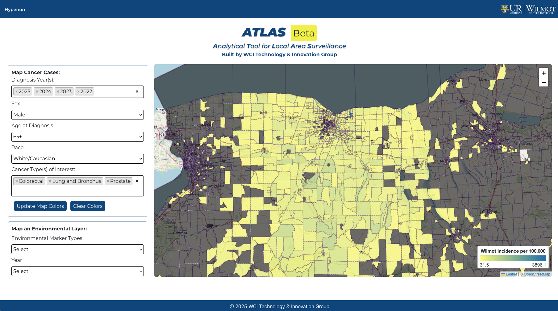 The Cancer Visual Analytic System is a robust and powerful tool that allows for geospatial analysis across any field within the Hyperion database