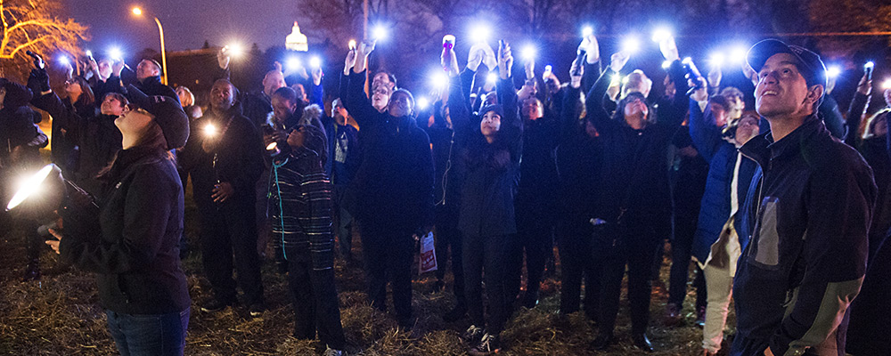 night photo of Shine a Light Thank you to everyone who came out to kick off the Eastman Institute for Oral Health Centennial Celebration by Shining a Light on Eastman Dental!  The evening was a great success, as evidenced by the media coverage by Time Warner Cable News and the resulting photograph. Thank you to the many volunteers and photographers who lent their time and expertise in support of this event.
