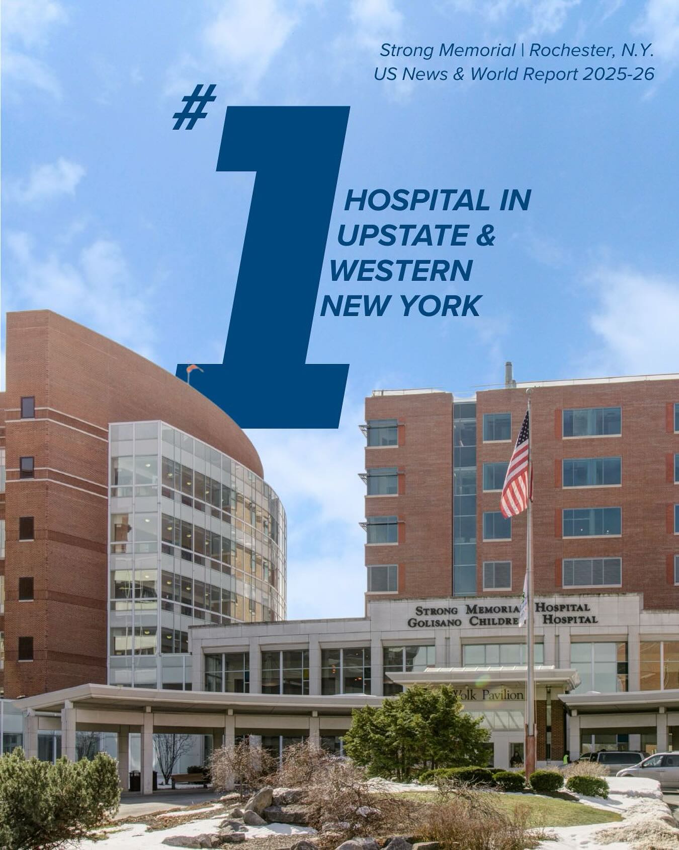 U.S. News & World Report ranks Strong Memorial Hospital as the top hospital in the state outside the New York City metro area.