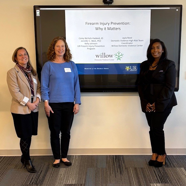 FIPP Co-directors, Jennifer West, PhD, and Corey Nichols-Hadeed, JD, presented Firearm Injury Prevention for Health Care Providers training to URMC’s Medicine in Psychiatry clinicians and staff. The training taught participants the role secure firearm storage plays in preventing suicide, unintentional injury, and death; how to identify the different types of secure firearm storage as well as the advantages and disadvantages of each; and how to have productive conversations with their patients (and their families) about the importance of secure firearm storage.