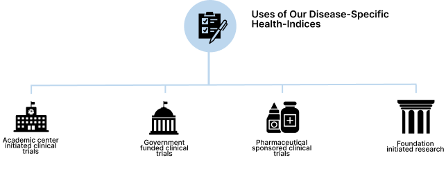 Our group will collaborate with you to develop and fully validate a disease-specific outcome measure for any disease or provide consultation regarding outcome measure selection, use, optimization, and analysis. If you would like more information about how you can obtain a license to use our health indexes in your study, please contact HealthIndexes@URMC.Rochester.edu.