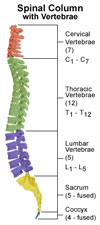 The spinal column is a stack of vertebral bones separated by flexible shock-absorbing discs. The spinal cord, a cable-like bundle of nerves, originates in the brain and runs down the center of the spinal column. The peripheral nerves branch out from the spinal cord through nerve root canals in the vertebra, and create thread-like communication pathways to the body.