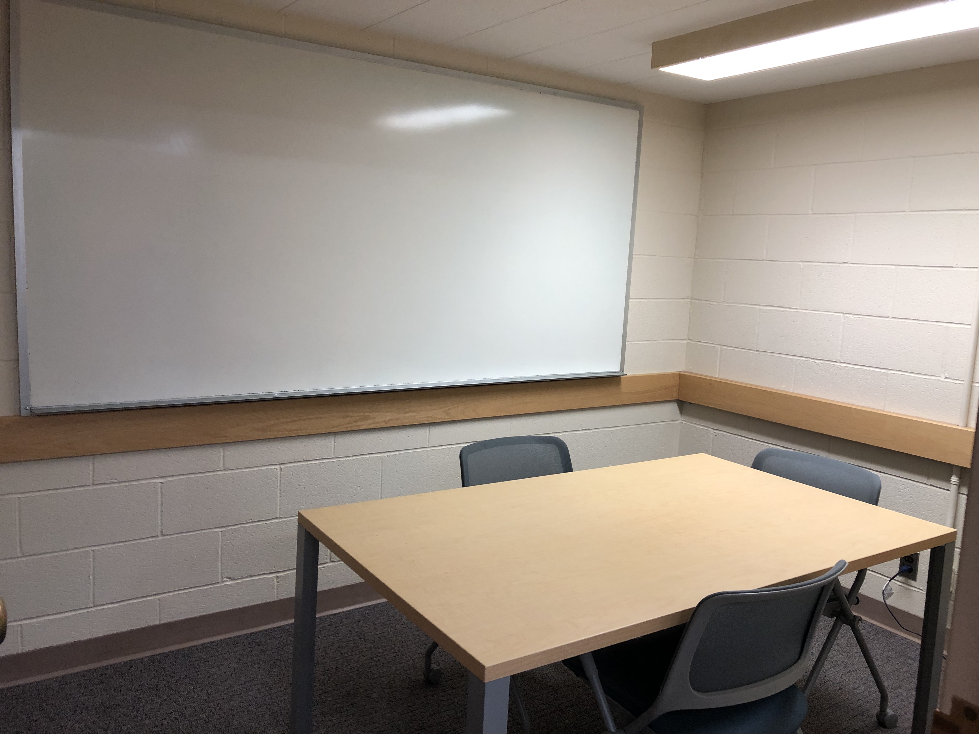 There are six study rooms located on the first floor in the front of the library. All rooms are equipped with tables, chairs and whiteboards. These rooms may be used for group collaboration or individual study. Some may be reserved for use during library operating hours, others are available on a first-come, first-served basis. Please note that after library operating hours, all study rooms are first-come, first-served.