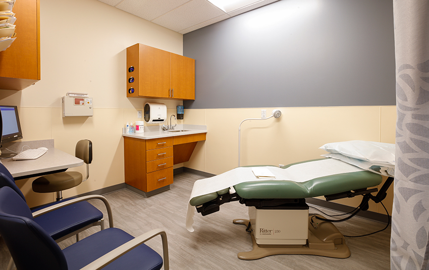 Image: Your visit with the colorectal surgery team at UR Medicine takes place in a comfortable, private exam room designed to support open conversation and personalized care.