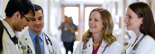 Pictured: back row, Robert Horowitz, M.D., Joseph Nicholas, M.D., M.P.H., and Michael Apostolakos, M.D. Front row, M. Patricia Rivera, M.D., Ruth O’Regan, M.D., Annie Medina-Walpole, M.D., and Thu Le, M.D.