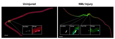 Sarcopenia is the accelerated loss of skeletal muscle mass and function observed in most members of the elderly population and is a significant contributor to falls, frailty, and loss in functional mobility. Disabilities related to sarcopenia are a burgeoning cost to the US healthcare system. Additionally, the progression of sarcopenia correlates with reductions in neuromuscular junctions (NMJs) and the number and function of resident stem cells of skeletal muscle (satellite cells, SCs), which are also critically involved in the repair of injured muscle. To further understand the role of satellite cells in sarcopenia, NMJ, and skeletal muscle repair, the CMSR has research programs that utilize targeted mouse genetics and injury models to determine how molecules of interest affect satellite cell fate and skeletal muscle regenerative outcomes. Other work includes understanding the biological mechanisms of cancer-related skeletal muscle wasting and musculoskeletal injury prevention and performance enhancement.