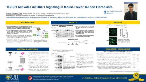 URMC / Center for Musculoskeletal Research / Seminars and Meetings / CMSR Symposium / e-Posters / Alenchery-Awad TGF-β1 Activates mTORC1 Signaling in Mouse Flexor Tendon Fibroblasts Rahul Alenchery Presenter Zoom Link Download the Narrated PPSX Poster Share This e-Poster Share on Facebook Share on Twitter