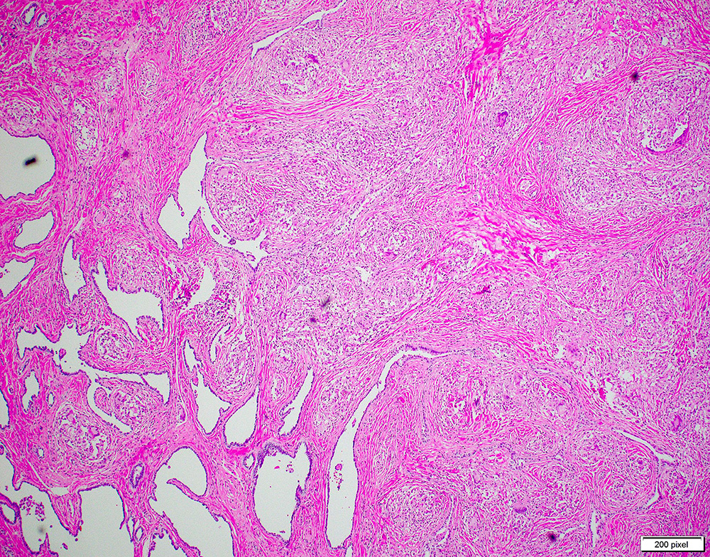 A 27-year-old African-American male presented with painful left testicular mass. He noticed a slight fluctuation in the size of the mass over the past four months, as well as subjective fever and chills. He denied dysuria, discharge, and gross hematuria. Initial workup revealed a mildly elevated alpha-fetoprotein (AFP) level (350 U/L) with normal beta-HCG and LDH.