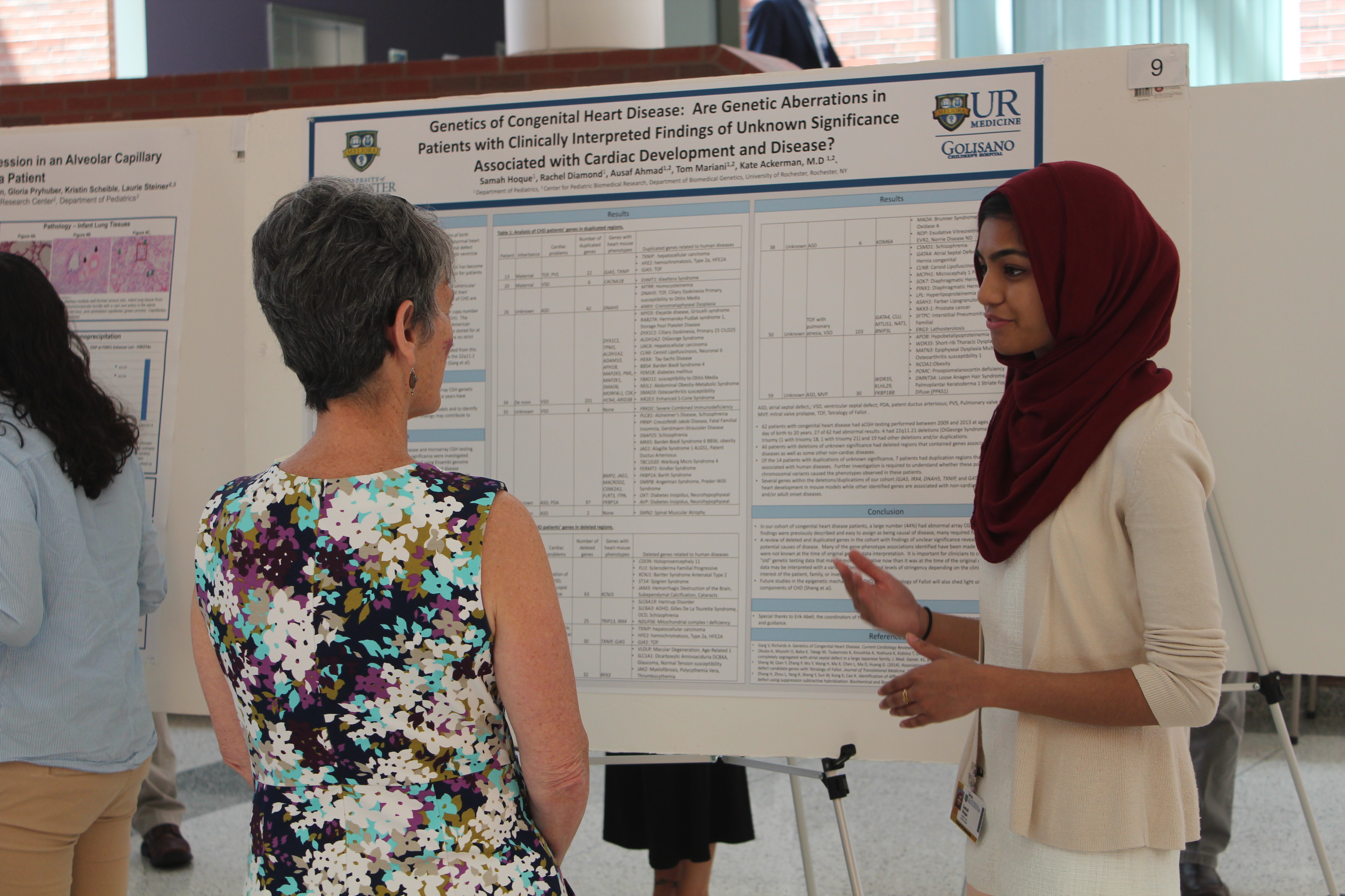 At the end of the summer, students present the results of their research projects at a poster session for the whole Department of Pediatrics at the University of Rochester Medical Center. Many students become co-authors on manuscripts incorporating their research and create lasting relationships with their mentors. We encourage you to explore our website and apply for our program if you are considering a career in academic medicine, pediatrics, or clinical/basic/translational research.